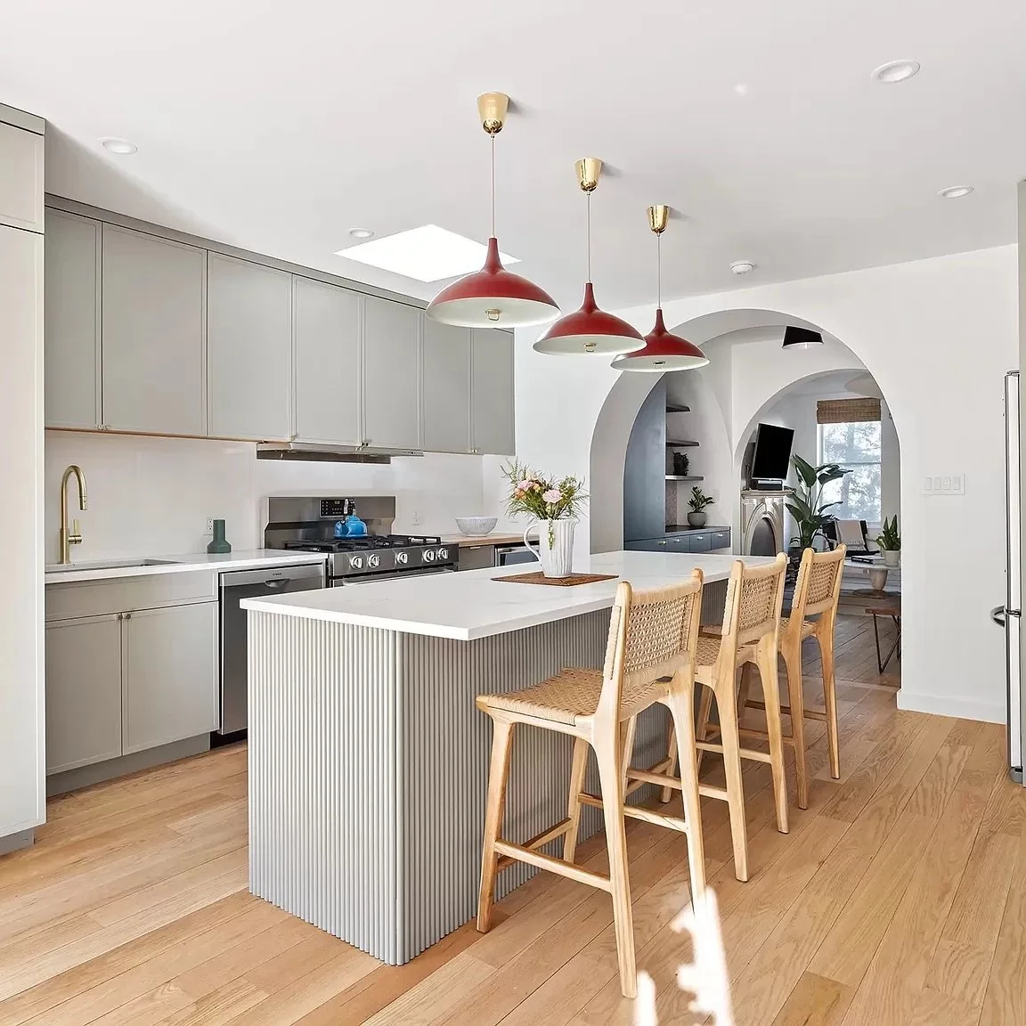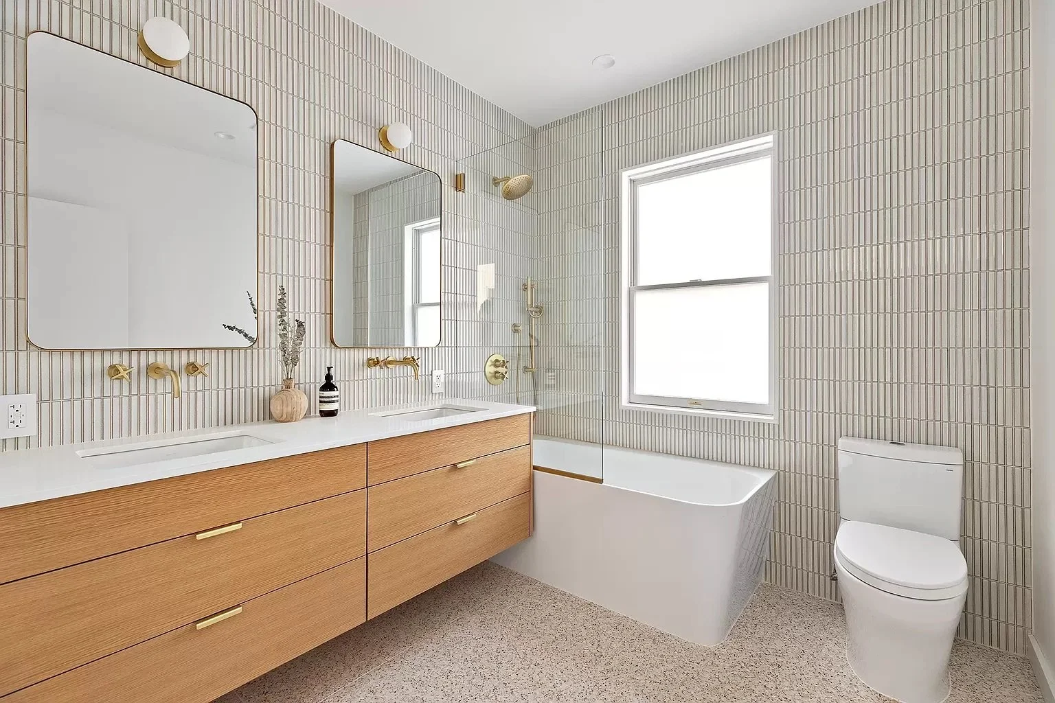 In this full gut renovation project, every square foot was meticulously planned to optimize space utilization. The interplay of light was a key focus, with strategically placed windows, skylights, and glass doors flooding the house with natural light. The result is a modern, airy home where every corner is purposeful and bathed in light, creating a harmonious blend of functionality and aesthetics.